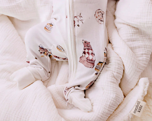 Regular price $49.95 AUDRegular priceUnit price / perSale price $49.95 AUDBamboo Zipsuit - Honey Bears