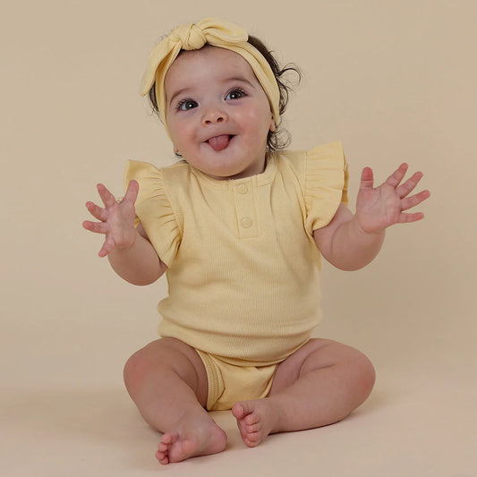 Snuggle Hunny - Sunlight Short Sleeve Organic Bodysuit with Frill