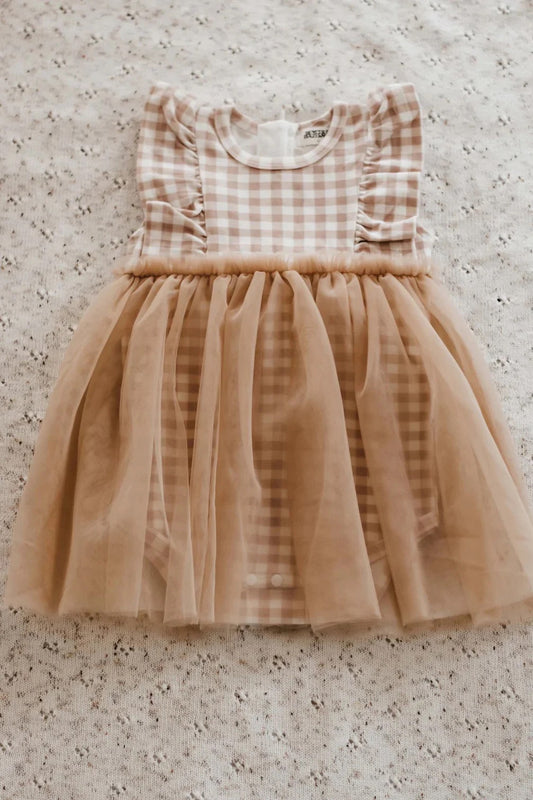 Gingham Tulle Jersey Romper Dress