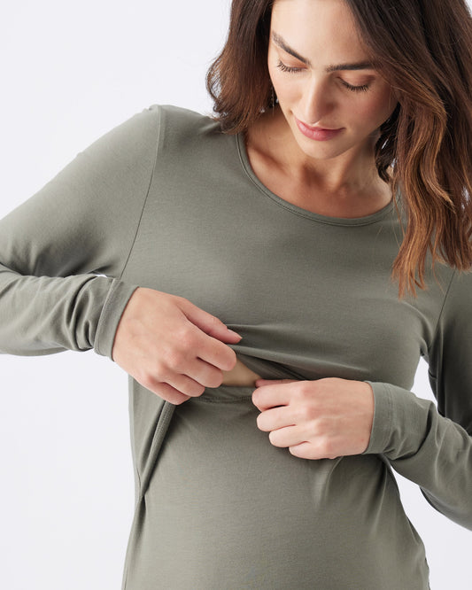 Layered Knit Nursing Dress - Khaki