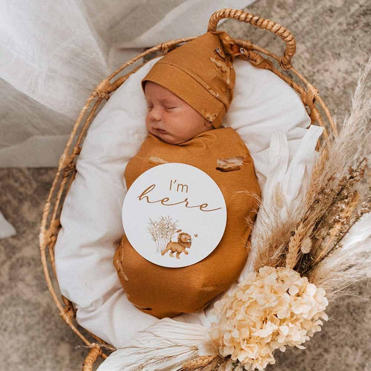 Snuggle Hunny - Lion & Sunrise Gold Reversible Milestone Cards