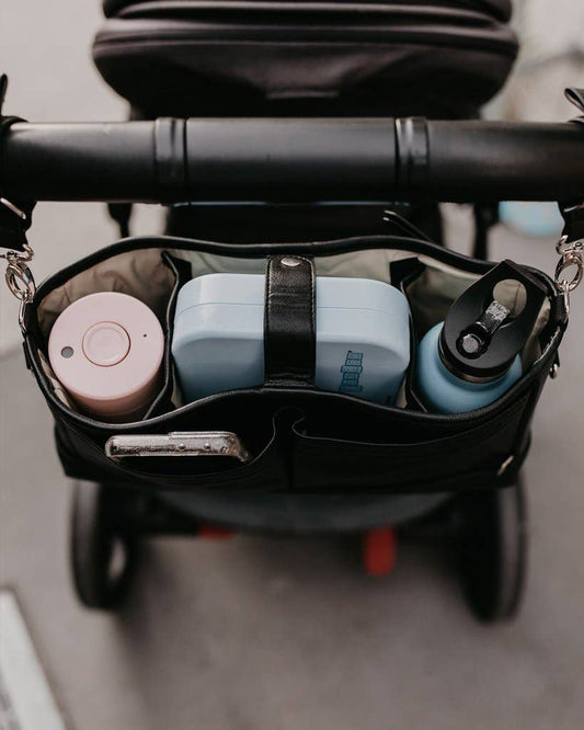 OiOi - Signature Pram Caddy - Black Dimple Vegan Leather