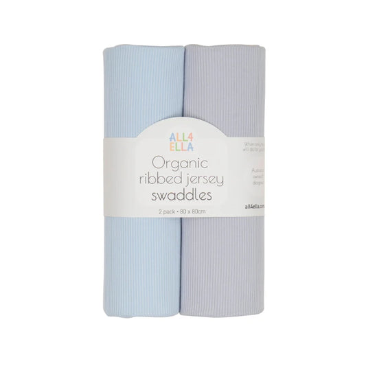All4Ella - Ribbed Jersey Swaddles 2pk - Blue & Grey