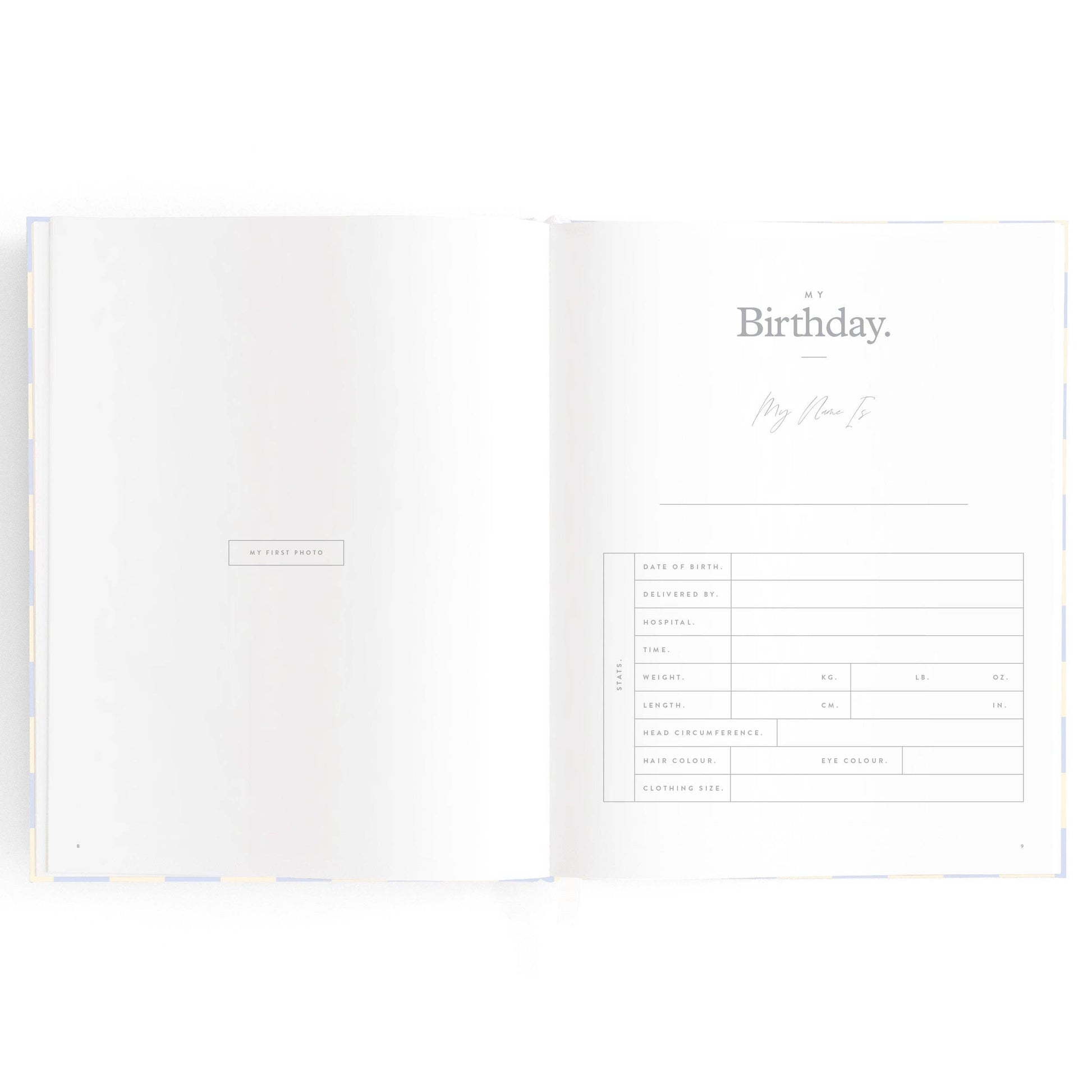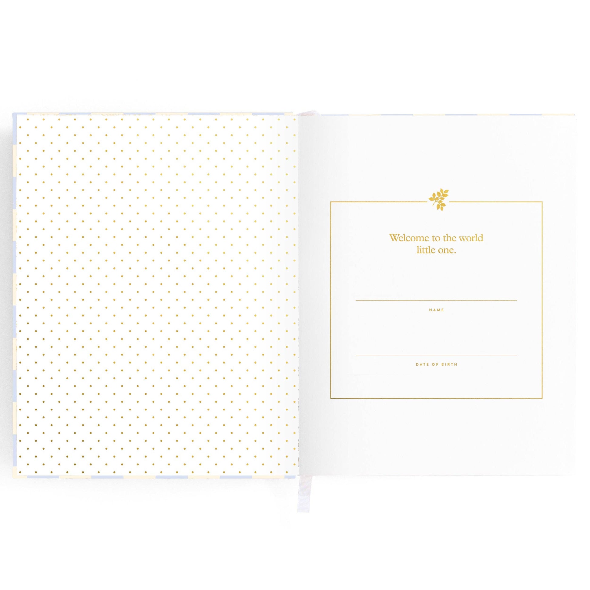 Introducing our NEW 2nd Edition - now with gold gilded edges and added pages including Star Signs, Birth Flowers, Birth Stones, Baby Teeth Chart! A beautiful keepsake for the whole family to enjoy. Includes: important milestones and firsts, family profiles, family tree and travel map, playgroup and daycare through to kindy and school years, time capsule, nicknames and celebrations, pets, friends, birthdays and more. Book: 220 x 280 mm (15mm spine) / 8.6 x 11 inches (0.59 inch spine). 190 pages. Gold foil stamped printed linen cover. White grosgrain ribbon. 2mm foil stamped hard cover, lay-flat binding. Gold foil end pages, edge painting and premium 115gsm FCS-certified acid-free paper. Packaged plastic free. Designed in Australia, printed in China.