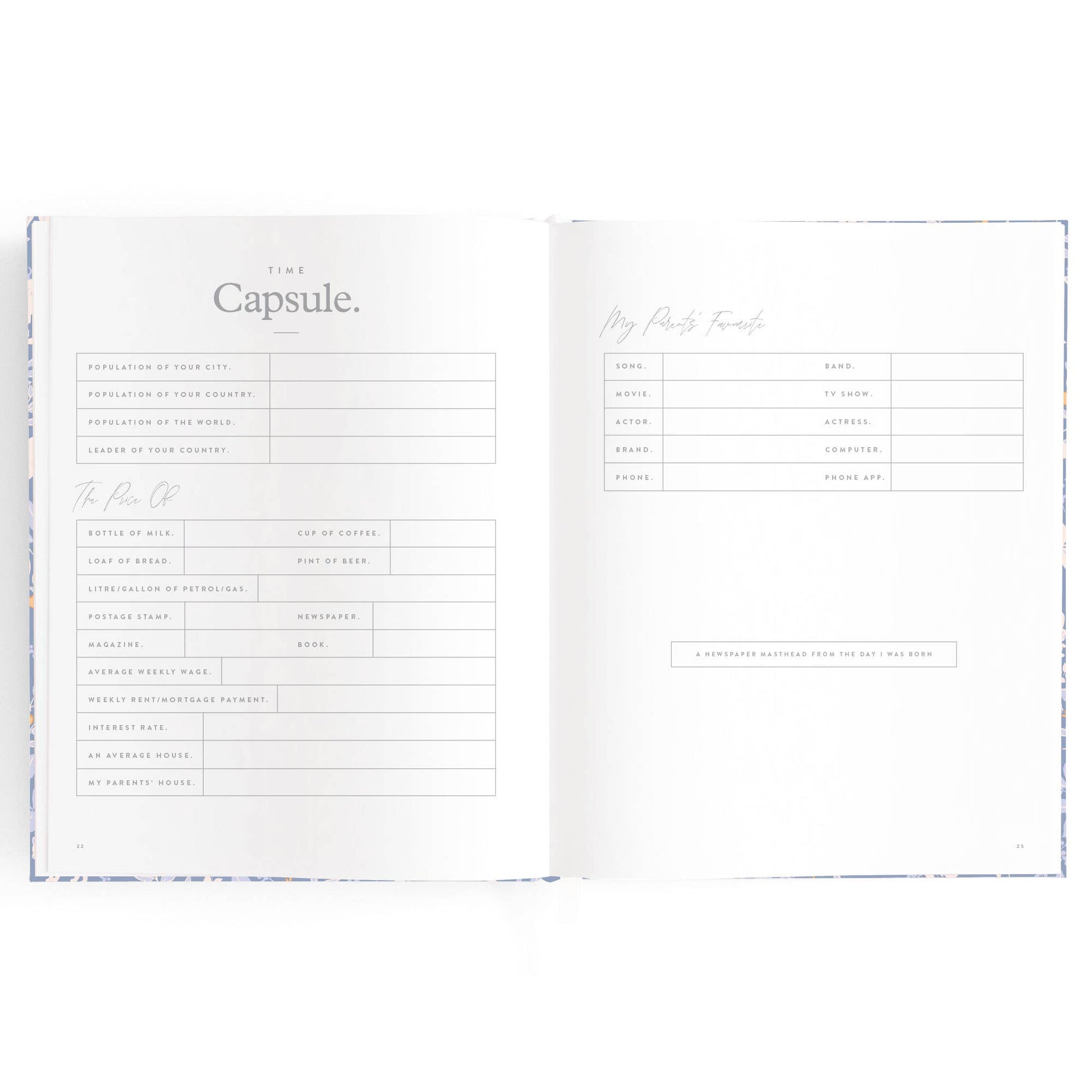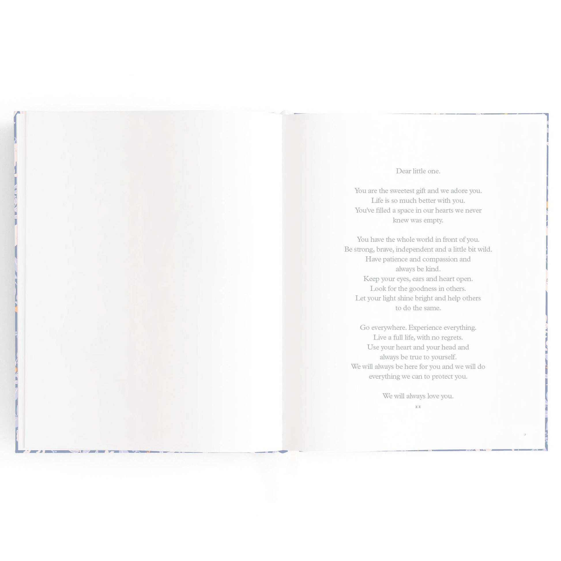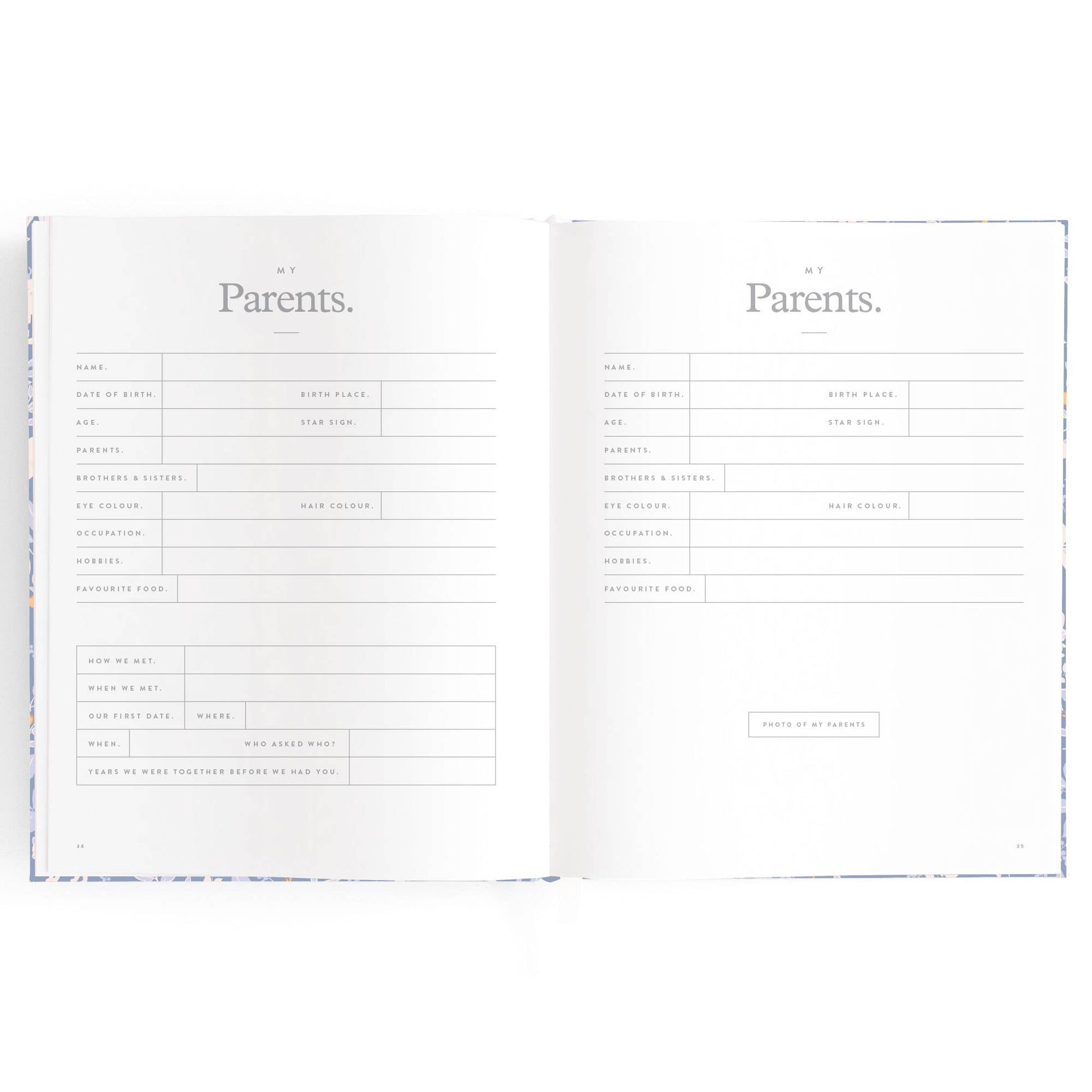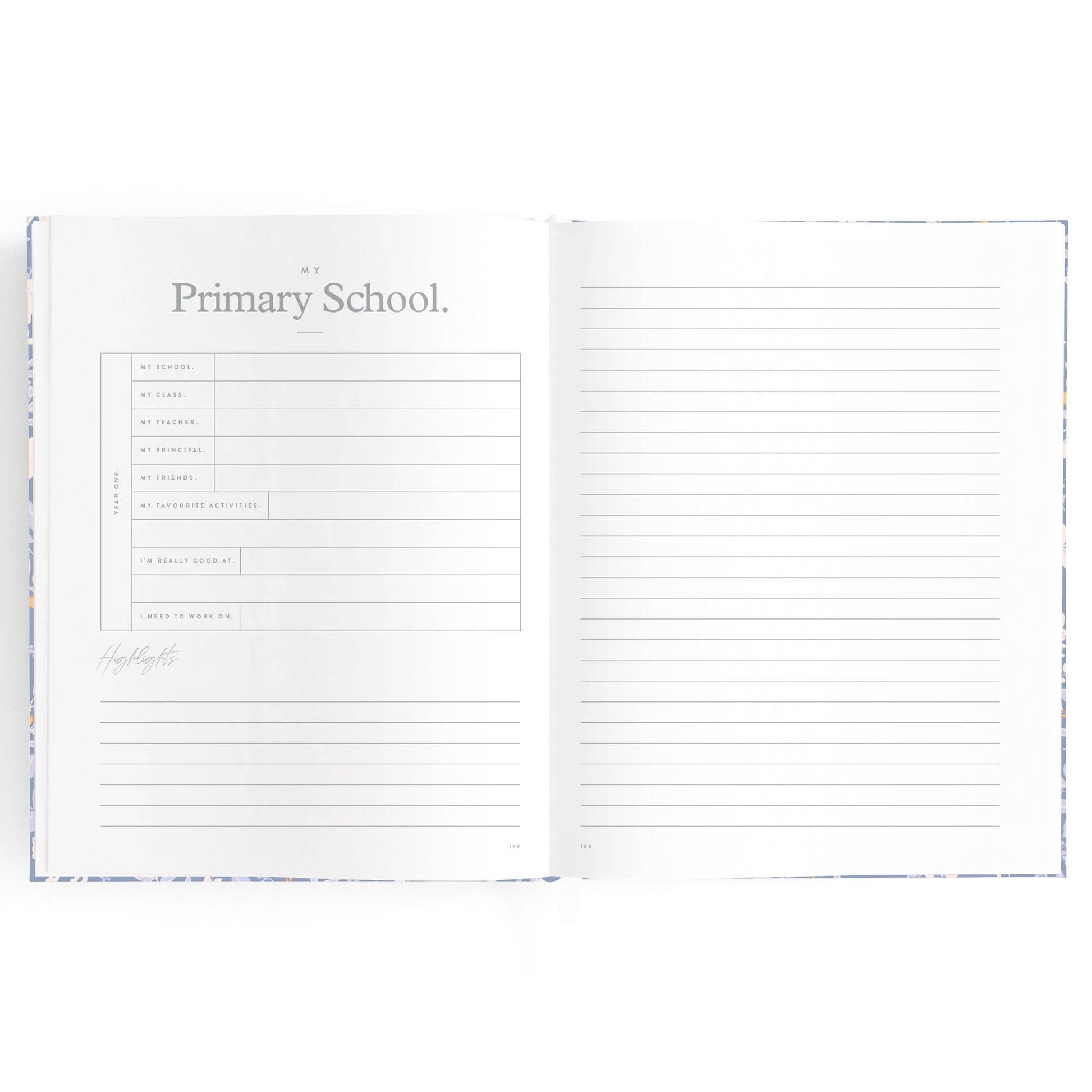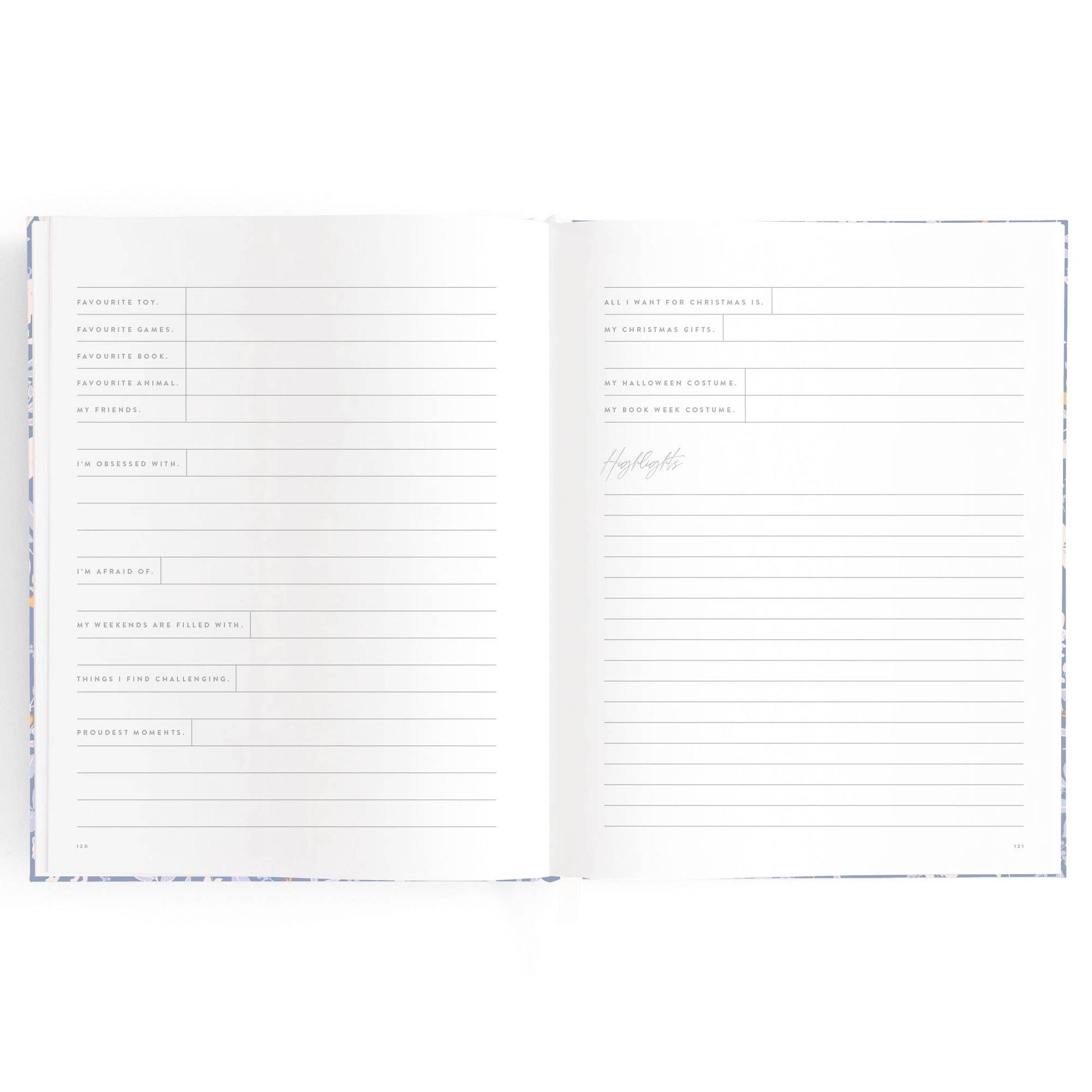 A beautiful keepsake for the whole family to enjoy. Includes: important milestones and firsts, family profiles, family tree and travel map, playgroup and daycare through to kindy and school years, time capsule, nicknames and celebrations, pets, friends, birthdays and more. 190 pages.