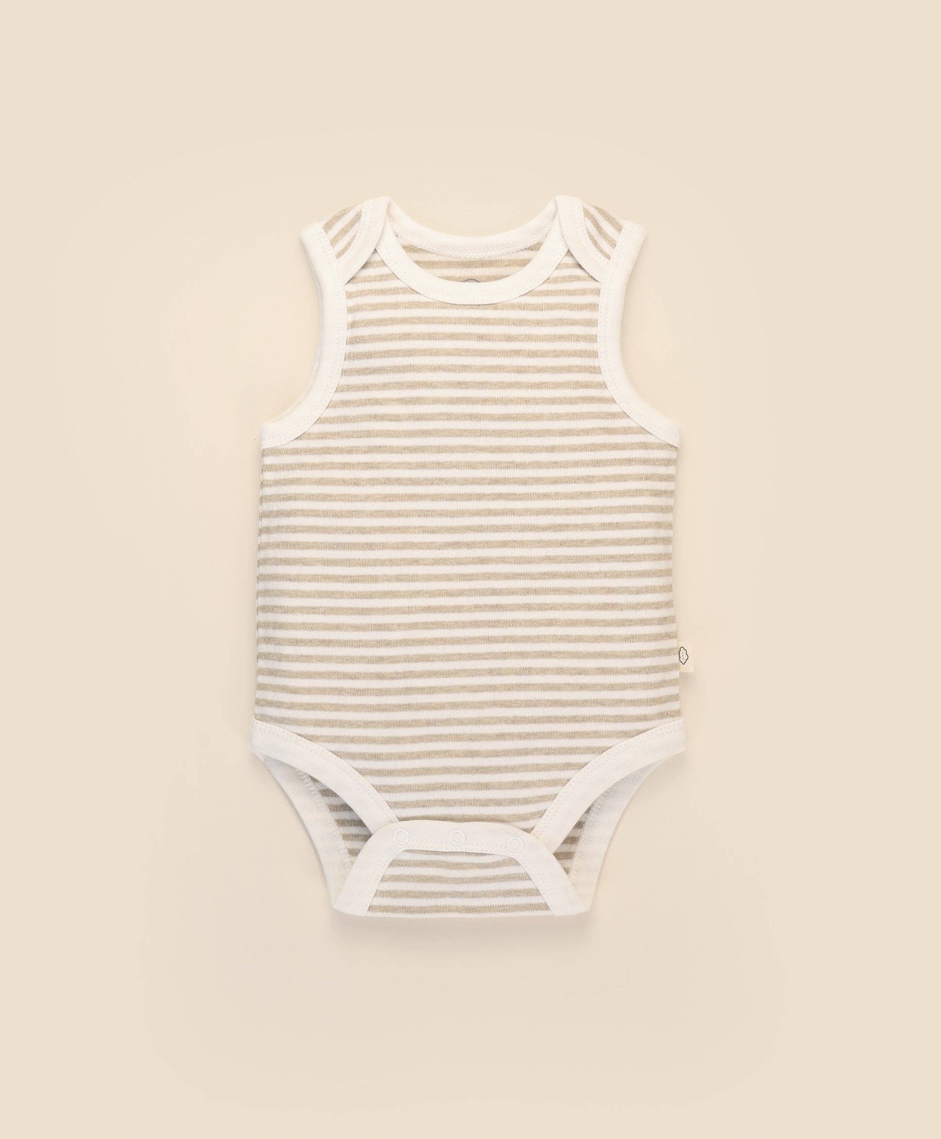 Lūmmi in Colour Babywear - Organic Cotton Singlet Bodysuit - Oat Stripes