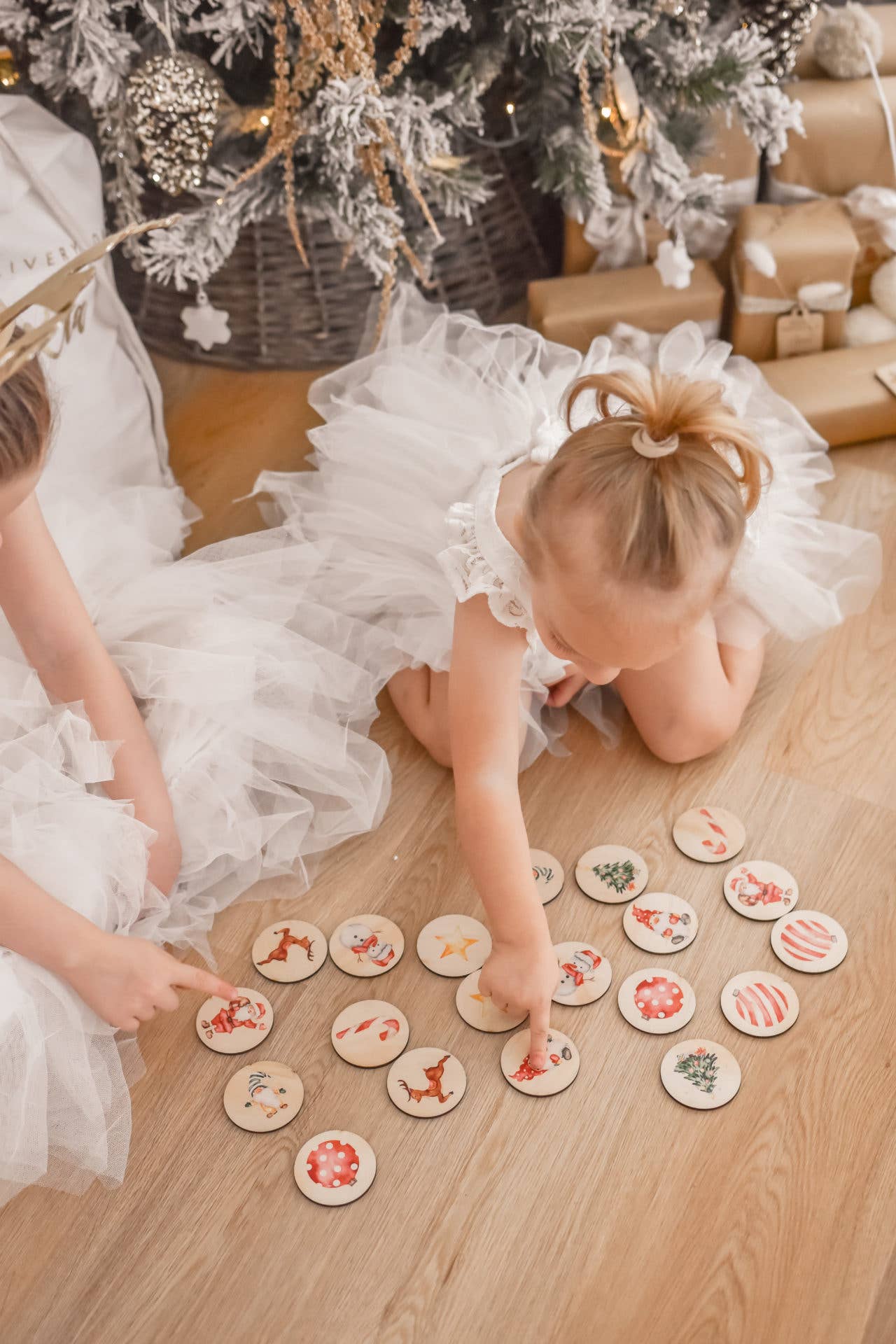 What better way to help your child learn memory recognition then with this cute Christmas Themed matching game! Featuring uv printed Christmas items. This beautiful set is a fresh modern twist on the popular children’s game.